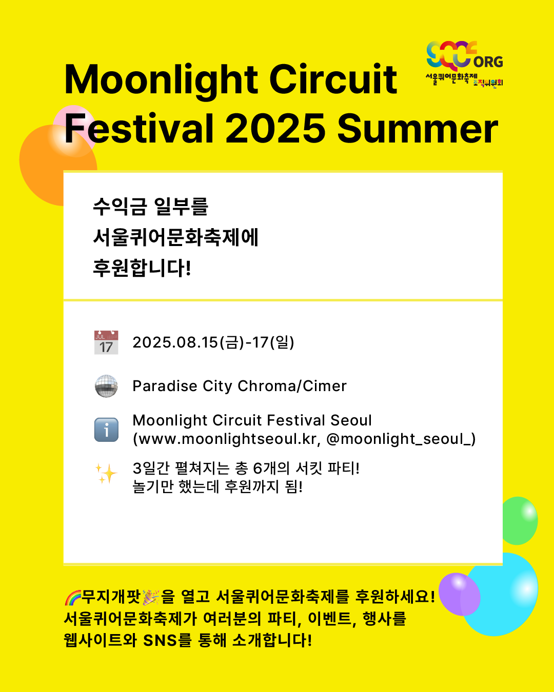 Moonlight Circuit Festival 2025 Summer [🌈무지개팟🎉]서울퀴어문화축제 SQCF 2025. 8. 2. 13:28